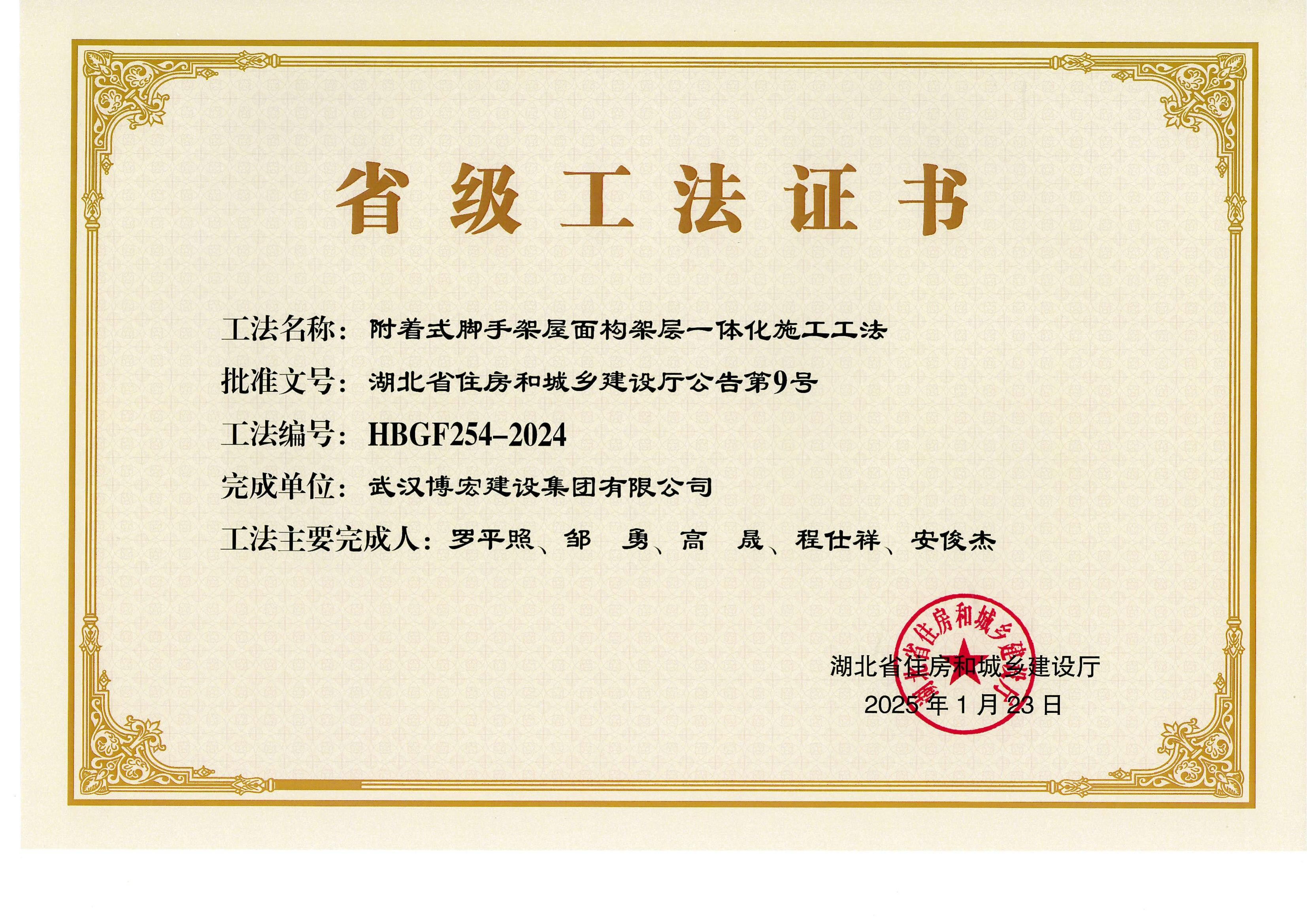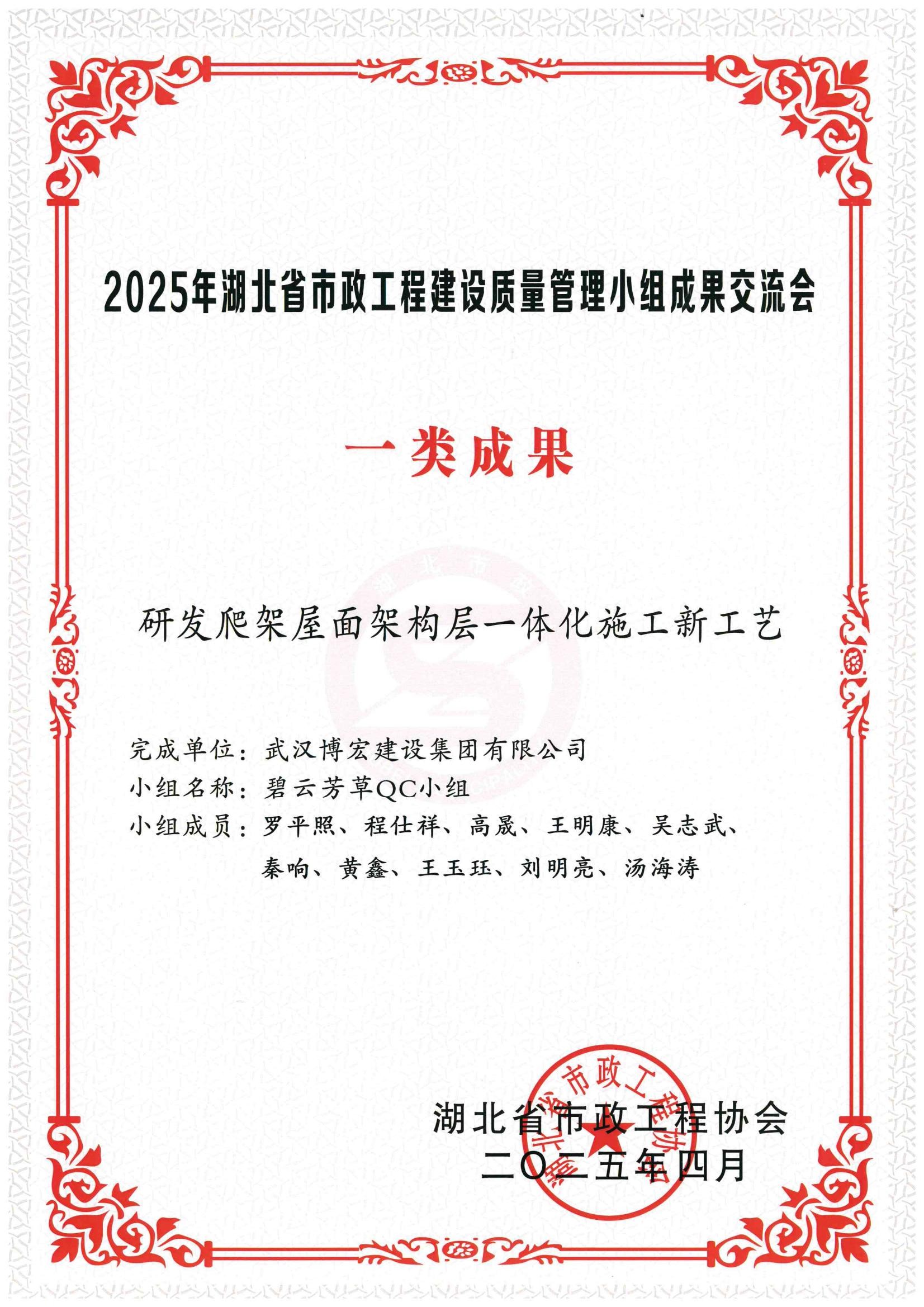 2025湖北省市政程協(xié)會-研發(fā)爬架屋面架構(gòu)層一體化施工新工藝