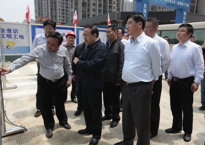 5月5日,武漢市市長唐良智、副市長張光清一行蒞臨博宏建設十升路道排工程項目施工現(xiàn)場檢查指導工作。