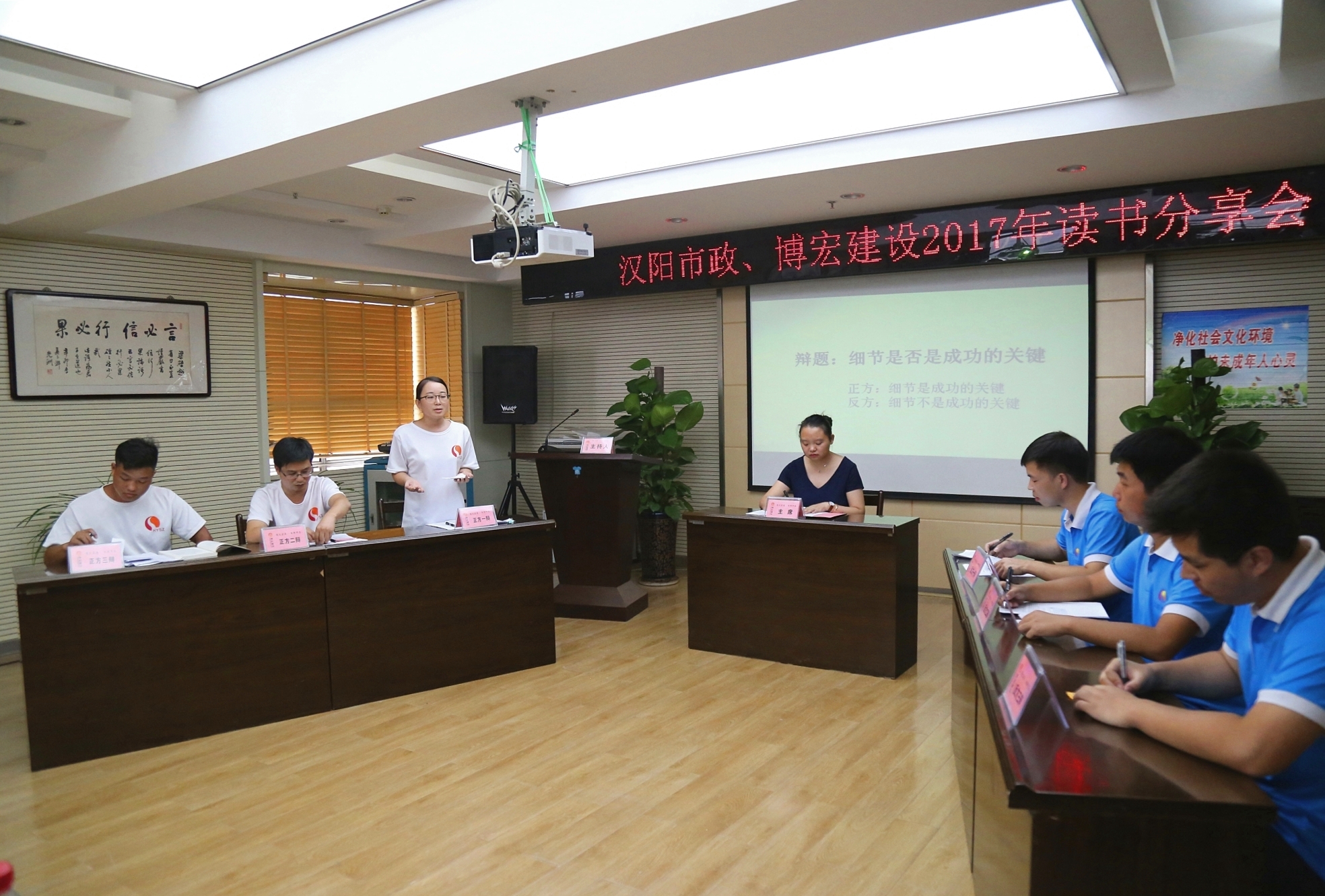 歌德曾說:“讀一本好書就是和高尚的人談話?!睗h陽市政博宏公司為在全公司營(yíng)造濃厚的讀書氛圍,打造“書香博宏”,7月31日,一場(chǎng)關(guān)于“細(xì)節(jié)”的讀書分享活動(dòng)在公司大會(huì)議室順利召開,集團(tuán)公司辦公室副主任冷雪、各兄弟單位辦公室主任等均參加了本次活動(dòng)。