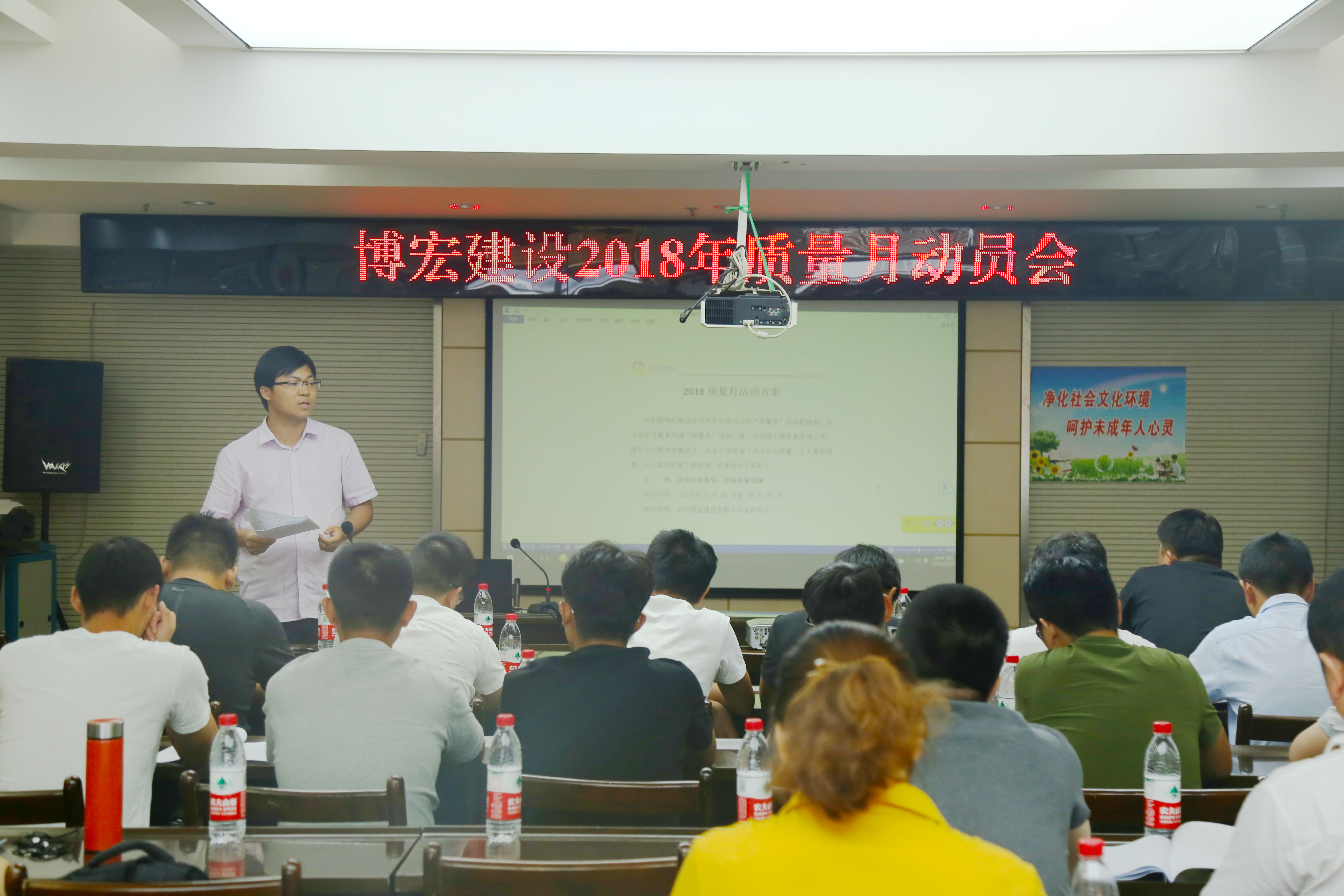 為積極響應(yīng)國家號召,進(jìn)一步加強(qiáng)工程質(zhì)量管理工作,提升公司整體質(zhì)量管理水平,8月31日下午,博宏建設(shè)質(zhì)量月動員會暨質(zhì)量溝通會在公司會議室召開,黨支部副書記郭一清、質(zhì)量技術(shù)部副部長周昌文以及公司質(zhì)量管理相關(guān)人員參加。