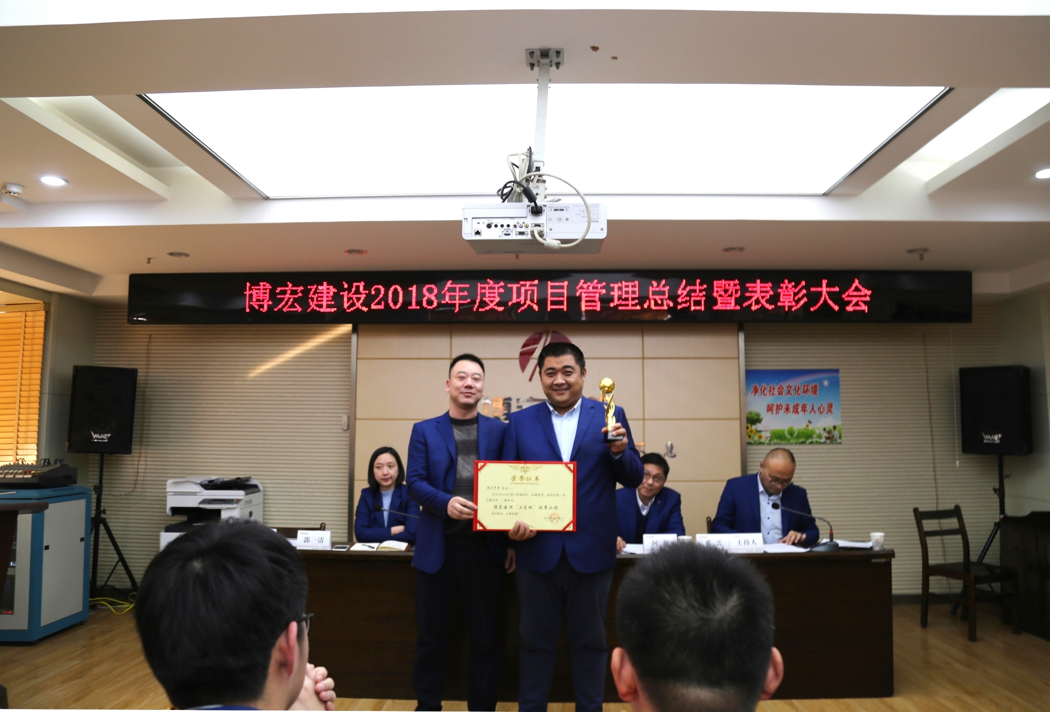 在隨后的表彰環(huán)節(jié)中,公司支部副書記郭一清宣讀了對年度“十佳員工”的表彰決定,辛桂華、周昌文、梅博文、高晟、盧劍、高詩琪、鄭娟、楊俊偉、李凱等優(yōu)秀員工伴隨激昂的音樂走上前臺,公司領(lǐng)導(dǎo)班子成員為其頒獎并合影留念。副總經(jīng)理奚雷宣讀了對年度優(yōu)秀項(xiàng)目的表彰決定,其中“英才中學(xué)”項(xiàng)目榮獲公司第二屆“工匠杯”獎,該項(xiàng)目建設(shè)團(tuán)隊也是第二次獲得公司項(xiàng)目管理最高榮譽(yù),成功實(shí)現(xiàn)衛(wèi)冕;此外,“正信花園”及“鸚鵡洲小學(xué)”項(xiàng)目分別榮獲年度“優(yōu)秀項(xiàng)目”稱號。