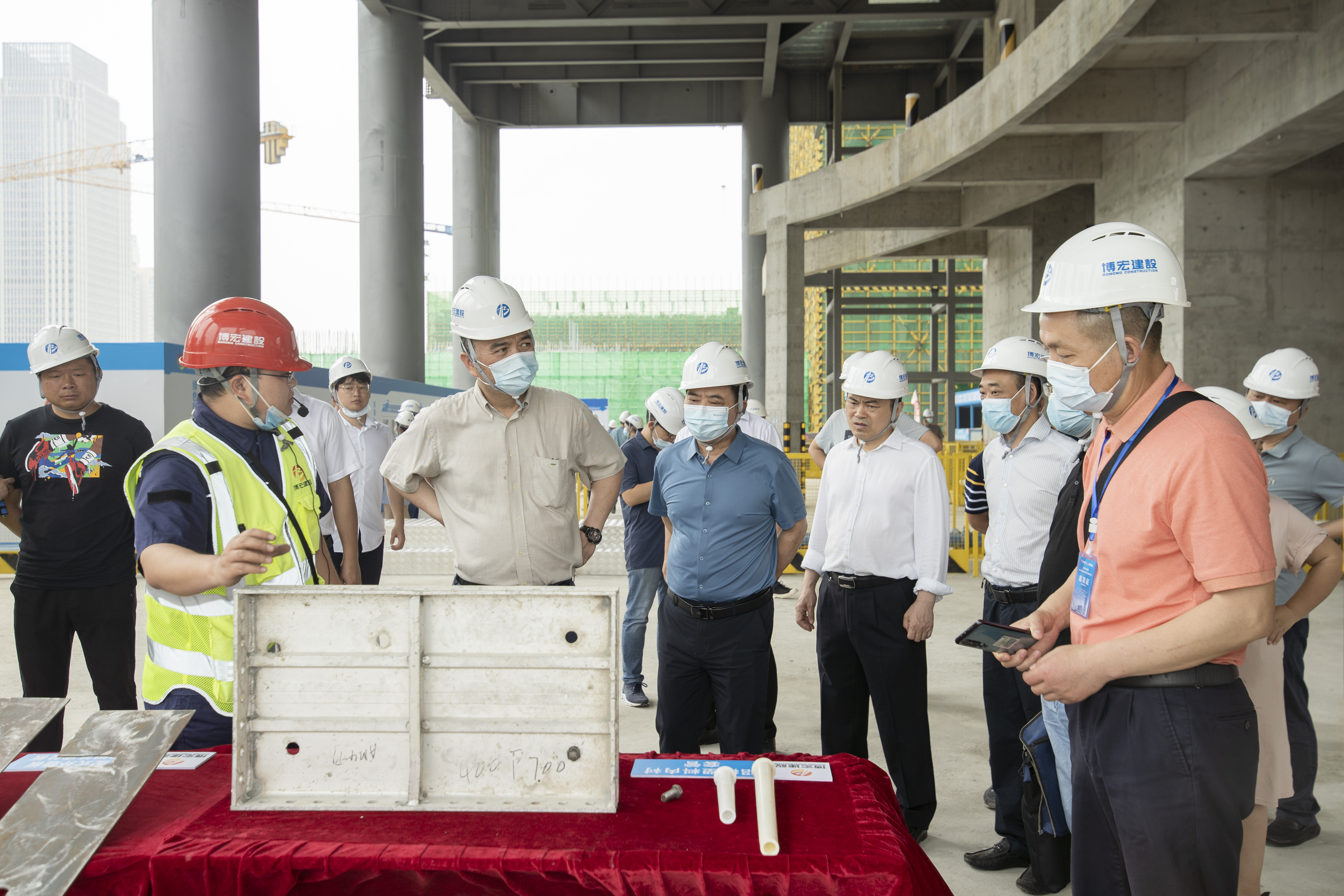 活動最后,全體人員共同前往博宏建設集團中南科研設計中心項目現(xiàn)場進行觀摩。工作人員對現(xiàn)場安全文明亮點與智慧工地建設情況進行了詳細介紹。