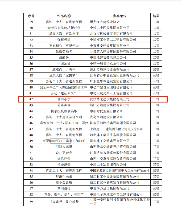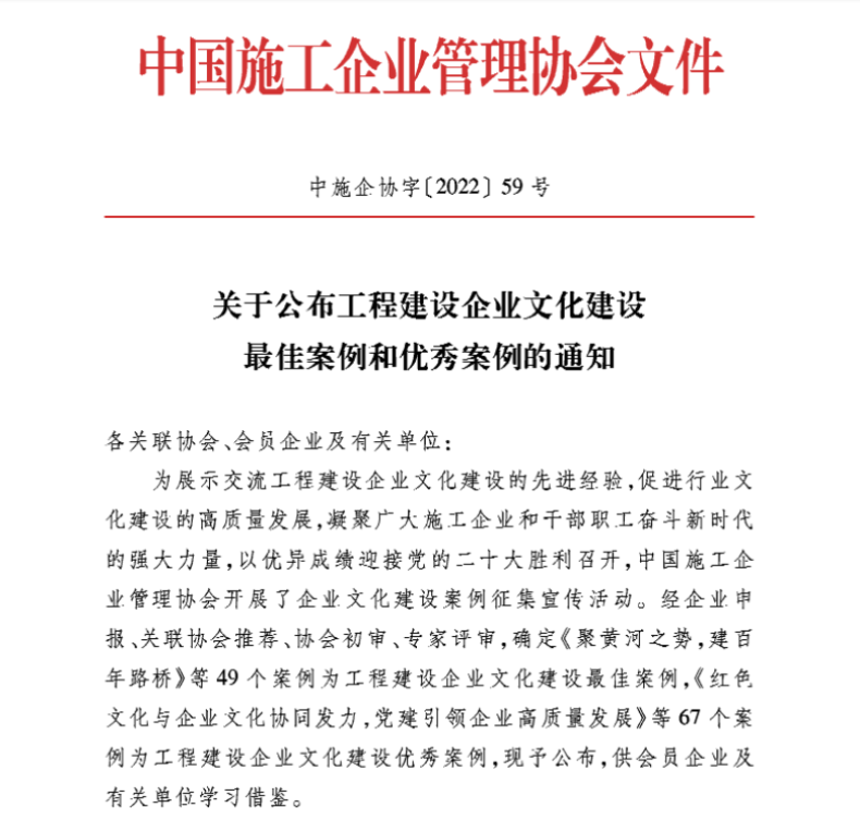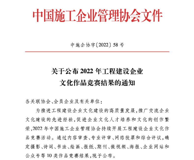 近日,中國施工企業(yè)管理協(xié)會發(fā)布“關(guān)于公布工程建設(shè)企業(yè)文化建設(shè)最佳案例和優(yōu)秀案例的通知”和“關(guān)于公布2022年工程建設(shè)企業(yè)文化作品競賽結(jié)果的通知”,經(jīng)過內(nèi)容審查、專業(yè)評審等環(huán)節(jié),博宏建設(shè)集團(tuán)《創(chuàng)新企業(yè)文化建設(shè) 凝聚企業(yè)發(fā)展新動能》案例獲評工程建設(shè)企業(yè)文化建設(shè)優(yōu)秀案例;仙山小學(xué)海報獲評海報作品競賽單元三等獎。