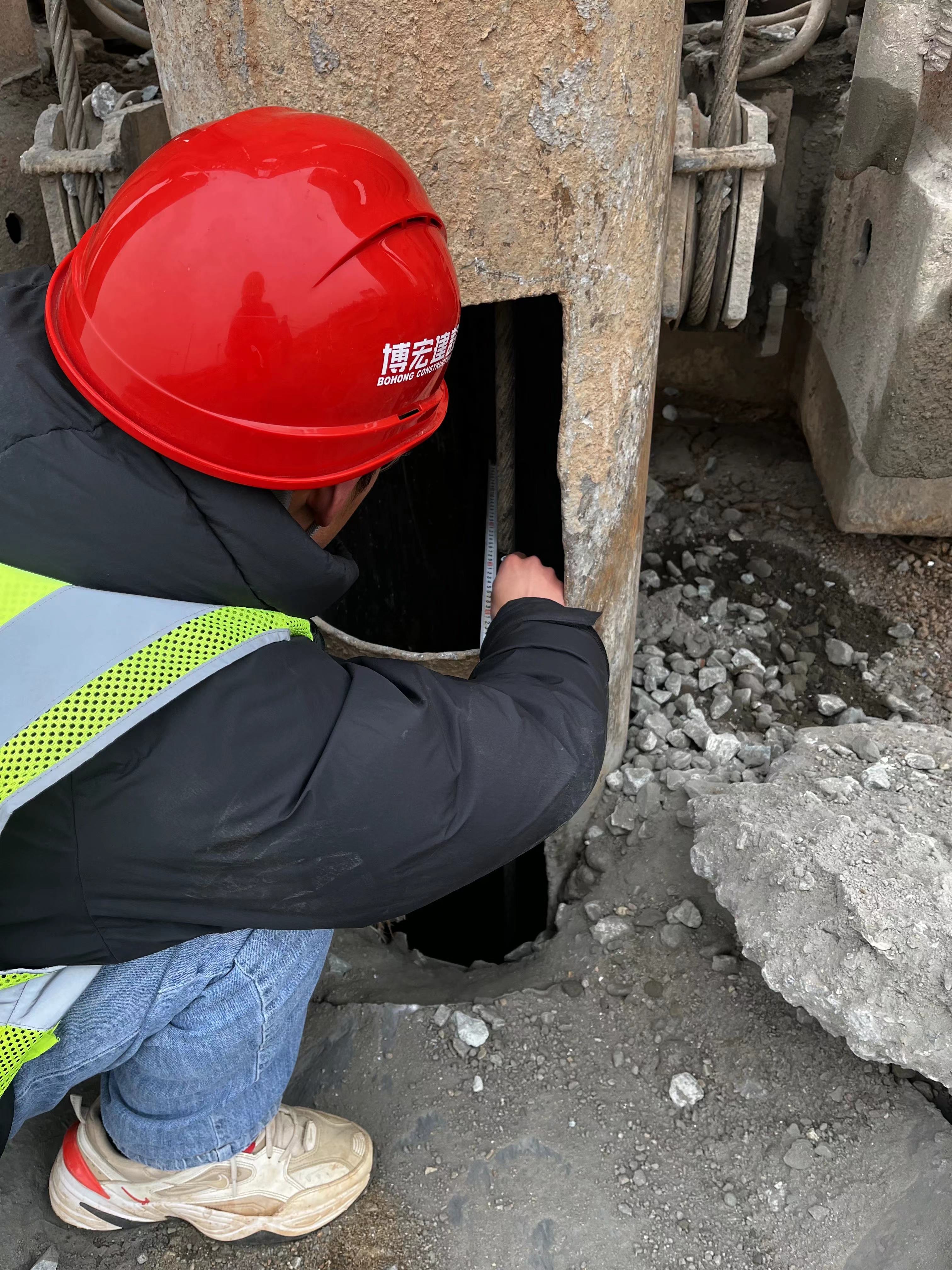 在載體樁施工過(guò)程中,三擊貫入度的控制是重中之重,規(guī)范要求中三擊貫入度需總量小于100mm,且三擊貫入深度依次降低。隨州項(xiàng)目團(tuán)隊(duì)在作業(yè)過(guò)程中嚴(yán)格控制樁位、樁徑、樁長(zhǎng)、樁垂直度、混凝土坍落度等參數(shù),將偏差控制在允許范圍之內(nèi)。