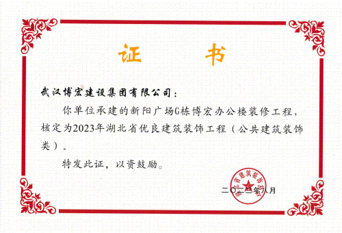 近日,湖北省建筑裝飾協(xié)會公布了2023年湖北省優(yōu)良建筑裝飾工程名單,由博宏建設(shè)集團承建的新陽廣場G棟辦公樓裝修工程項目、漢陽區(qū)西部政務(wù)服務(wù)中心、國博D9等4所幼兒園整體改造項目(EPC) 獲評“2023年湖北省優(yōu)良建筑裝飾工程(公共建筑裝飾類)”榮譽稱號。