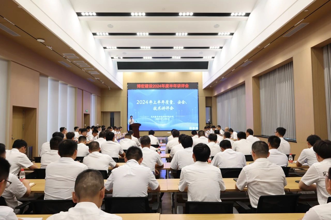 為切實提升項目管理水平,認真梳理項目現(xiàn)場優(yōu)秀做法,找準短板問題,明確后續(xù)工作重點要求。7月26日下午,博宏建設(shè)集團2024年上半年質(zhì)量、安全、技術(shù)講評會在公司31樓會議室召開。公司黨委班子、總助、部門負責人、項目經(jīng)理、技術(shù)崗、質(zhì)檢崗、安全崗、施工崗共計74人參加會議。會議由總工辦彭迎主持。